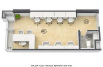 The office space ranges from 283 sq. ft to 487 sq. ft, with the flexibility to combine multiple units.