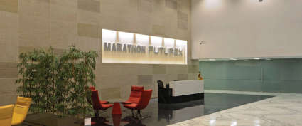 Marathon Futurex has carefully chosen areas, such as a large, air-conditioned lobby for visitors. With a fully glazed facade, these spaces offer views that aren't blocked. Futurex is a gold-rated building that helps save 20 30% of energy and 30 50% of water. Also, because it was designed and planned with care, it helps keep office costs low. In addition to this, each unit has a kitchen area and a bathroom right next to it.