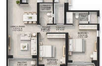 Every apartment is precisely designed, exhibiting minute details and finesse. The expansive balconies in the living room and master bedroom provide a space to relax and rejuvenate. The living room comprises a passage area and a dedicated dining area. The furnished kitchen comes with a utility area for the placement of a washing machine.