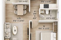 When you enter the apartment, you are greeted with opulence in the living room. The living room can easily fit a sofa centre and your media console, along with a kitchen and dining area. The sliding window provides a beautiful view of sunrise and sunset. The bathrooms have branded CP and sanitary fittings. The carefully planned apartments are ideal to relieve your stress.