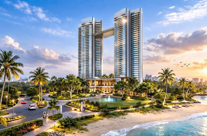Raheja Exotica is an exquisite residential community in Versova Island. Spanning 32 acres of land, these premium skyscrapers offer 2 BHK and 3 BHK apartments and skyplexes. These residences overlook the pristine Arabian Sea. The residences are exclusively designed with unmatched precision and high-end features. The carpet size of these apartments ranges from 934 sq. ft. to 1492 sq. ft.