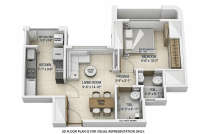 The master bedroom is placed next to the living room for privacy and comfort, with sufficient room for wardrobes and daily furniture needs. Every apartment's bedrooms comprise attached bathrooms. The common bathroom is neatly planned with quality fittings, anti-slip tiles and functional layouts. Every home features balconies in the bedroom and living room that extend the living area and offer panoramic views of the Sanjay Gandhi National Park and the surrounding cityscape. Overall, the unit planning reflects efficient space mapping, minimal passage wastage, and modern living.